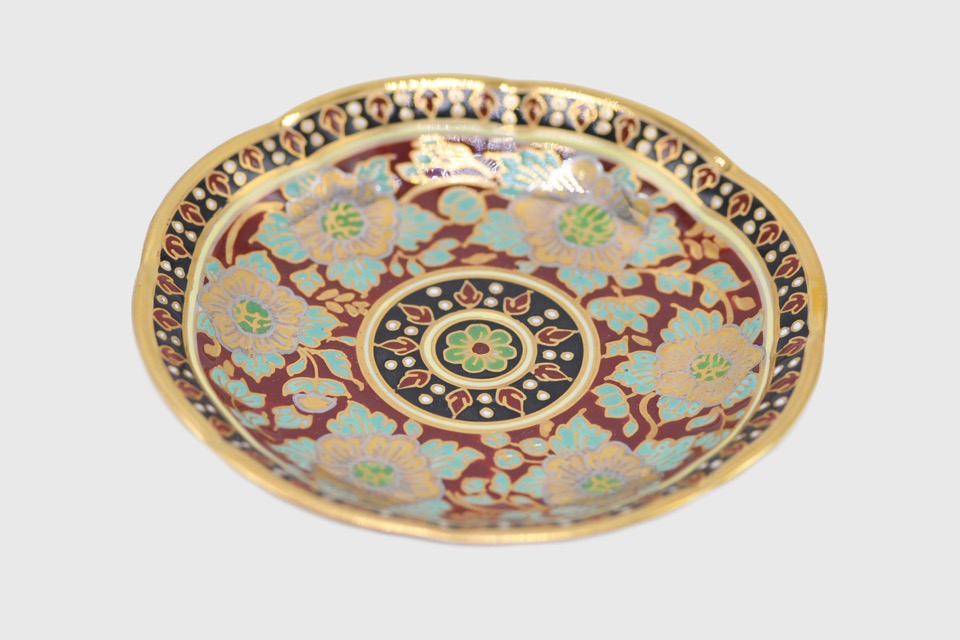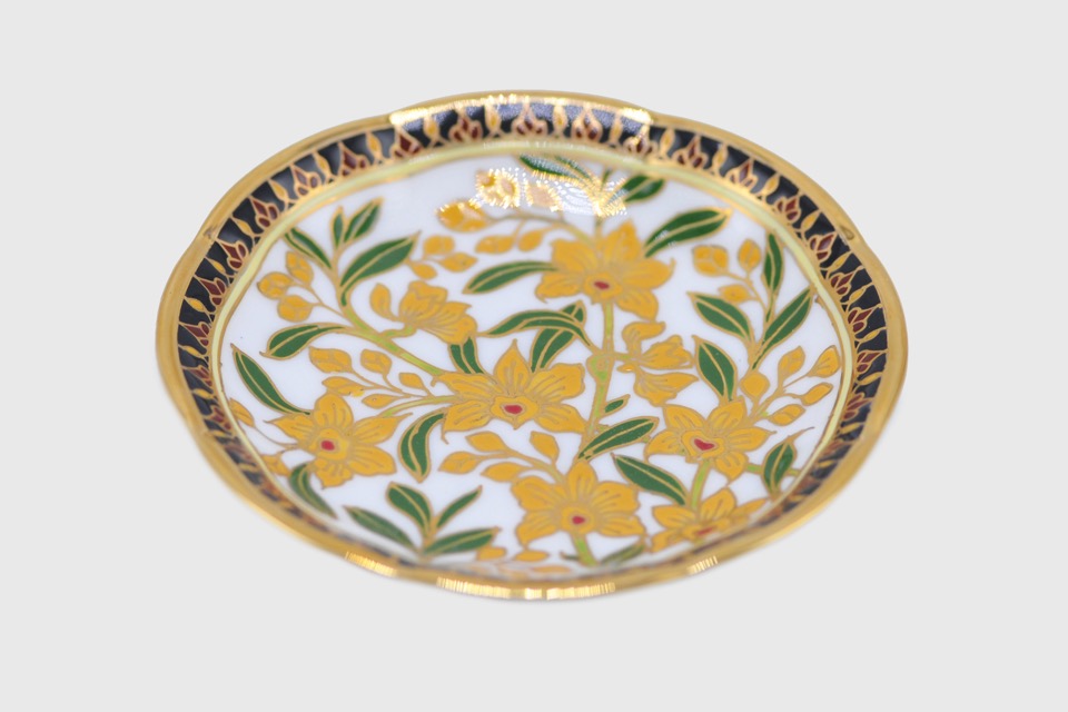 ลวดลาย : ดอกลีลาวดีแดง วาดลวดลายด้วยทองคำคุณภาพสูง